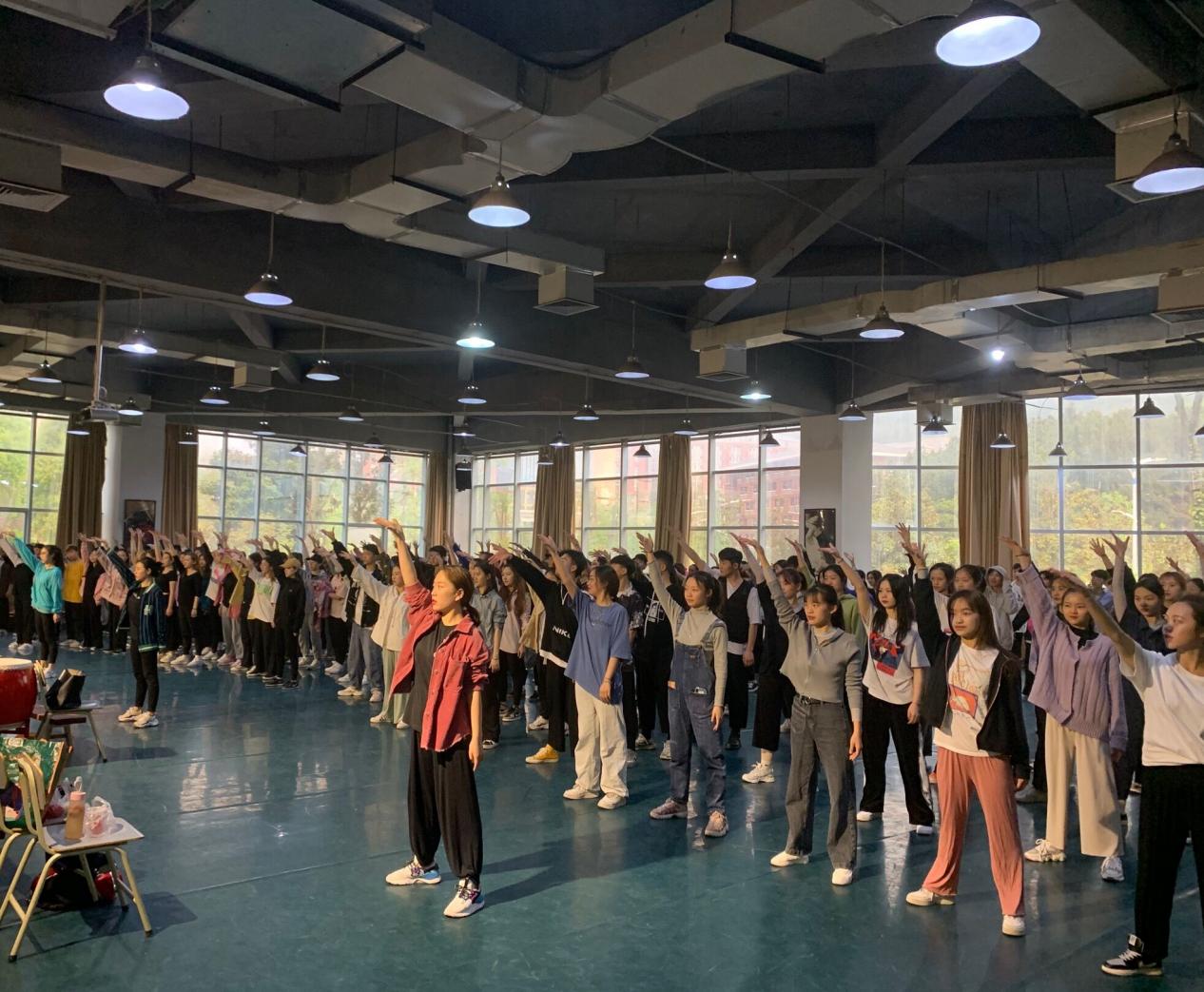 2021年4月1日,按学校统一安排,根据学院实际,舞蹈系全体师生参加做爱漫画 2021年春季运会开幕式演出排练。