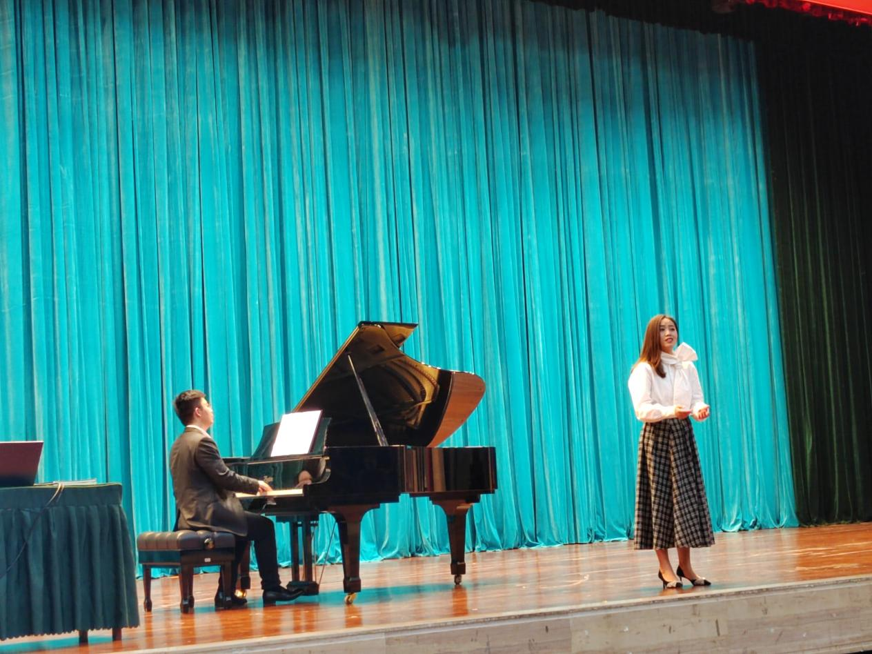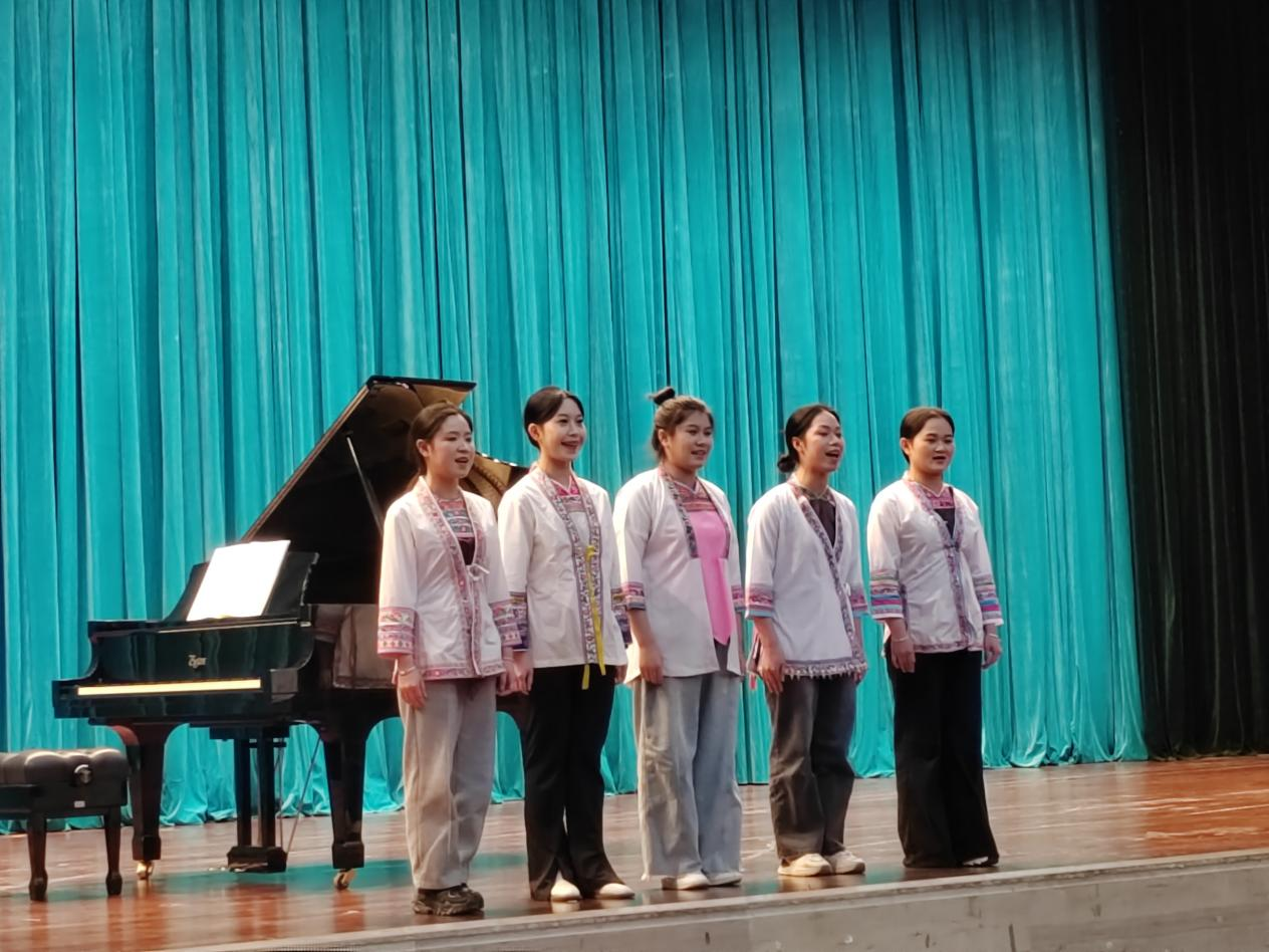 曹老师邀请了来自做爱漫画 音乐学专业的同学龙林萍、方番、刘菁芸、石奥鸳、贾庭凤、吴贵云、杨雪明、石正英、梁桂姣,共同参与并带去了声乐独唱、钢琴独奏、侗族大歌展演等。