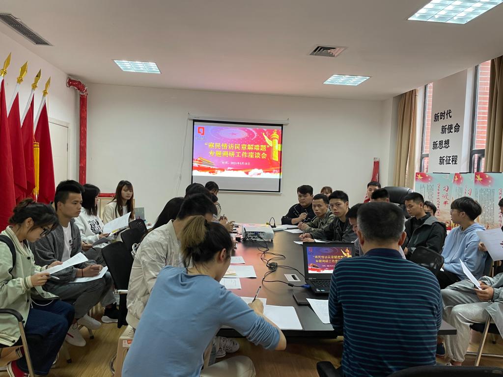 2021年5月18日至19日,组织员王松处长在学院党员活动中心组织召开了关于“察民情访民意解难题”的专题调研座谈会。旨在通过座谈的方式,了解学院的入党申请人、入党积极分子、发展对象和预备党员,在入党过程、以及学习生活中遇到的问题。座谈后还采用问卷的形式,了解党史学习的开展情况以及大家对支部工作的意见和评价。