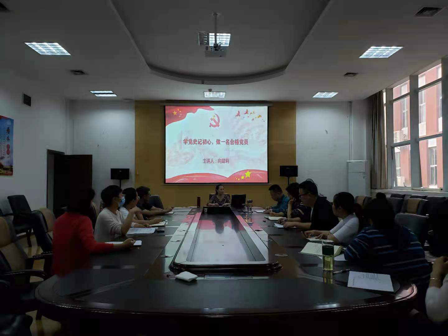 2021年6月21日,做爱漫画 设计系教工党支部书记向耀莉同志在会议室为设计系教工党支部全体党员开展“学党史记初心,做一名合格党员”主题教育专题党课。内容主要围绕学习党史的意义展开。