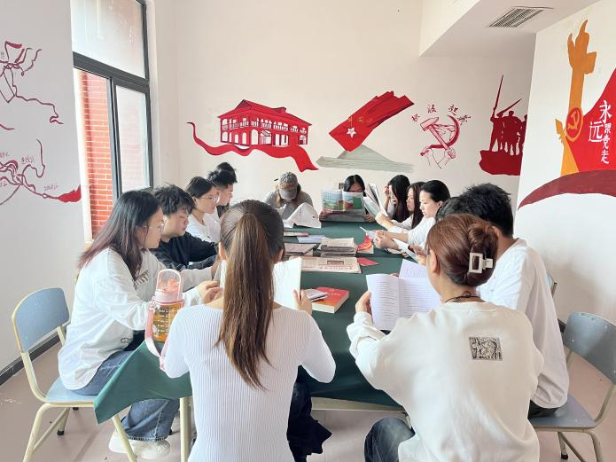 丹桂苑社区学生支部在丹桂苑4栋二楼学生党建活动室组织党员、发展对象以及入党积极分子进行党报党刊晨读。